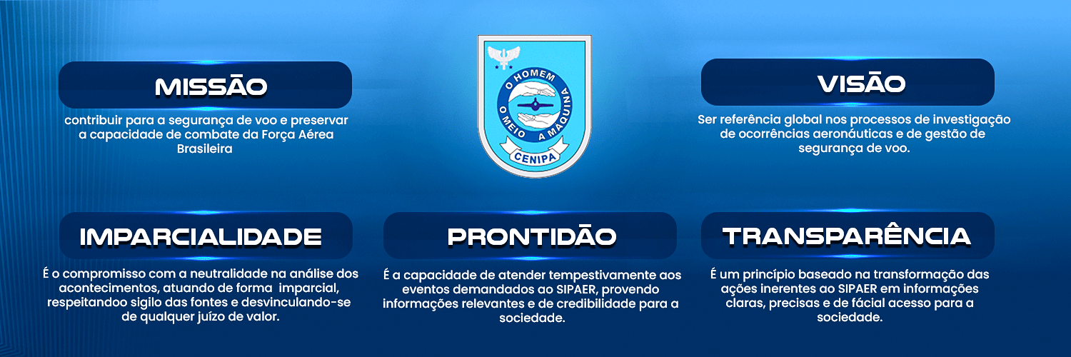 O CENIPA é o órgão do Comando da Aeronáutica responsável pelas atividades de investigação e prevenção de acidentes aeronáuticos. As investigações são embasadas no Anexo 13 à Convenção Internacional de Aviação Civil da ICAO – International Civil Aviation Organization, órgão de referência mundial, que normatiza as leis sobre aviação civil internacional.